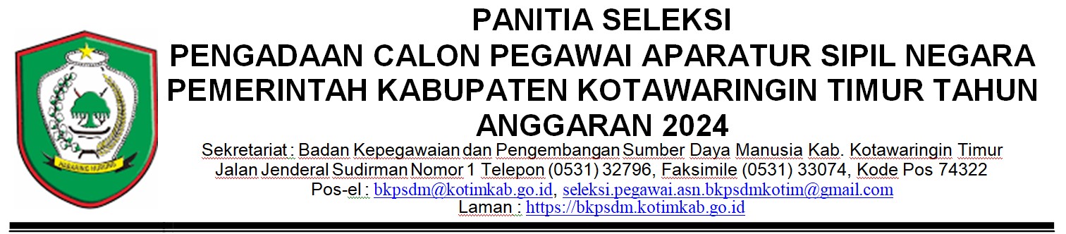 Merujuk pada pengumuman Ketua Panitia Seleksi Pengadaan PPPK Pemerintah Kabupaten Kotawaringin Timur Tahun Anggaran 2025 Nomor : 800/1.2.2/2023/BKPSDM.PPI/2025 tentang Alokasi PPPK Paruh Waktu dan Persayaratan Administrasi Usul Penetapan Nomor Induk PPPK Paruh Waktu di Lingkungan Pemerintah Kabupaten Kotawaringin Timur Tahun Anggaran 2025, dengan ini kami sampaikan hal-hal sebagai berikut :
